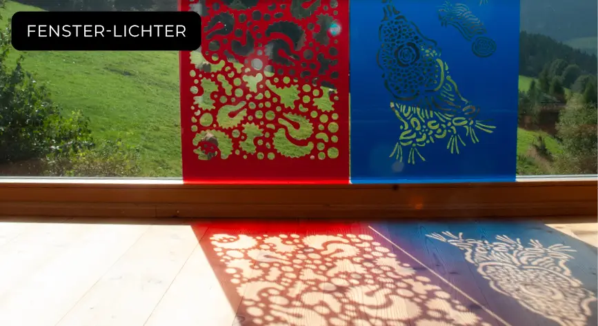 Ich gehe in die Moore, sammle ein paar Tropfen Wasser und platziere sie in gewölbter Form ungepresst auf dem Objektträger meines Mikroskops. Dann beobachte und filme ich das „kleine“ Moorleben im Tropfen. Die faszinierenden Lebewesen, die sich beim Blick durch das Okular offenbaren, reduziere ich zeichnerisch und grafisch auf das in meinen Augen Charakteristische und Wesentliche. So entstehen Licht-Collagen, die das Zauberhafte und Lebendige in einem Moortropfen in Schichten abbilden – und Fenster-Lichter, durch deren noch stärker reduzierte Formen die Sonneneinstrahlung ein Muster aus Licht und Schatten in unsere Innenräume wirft.